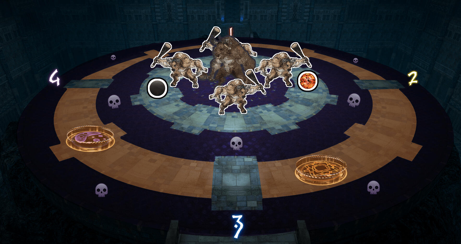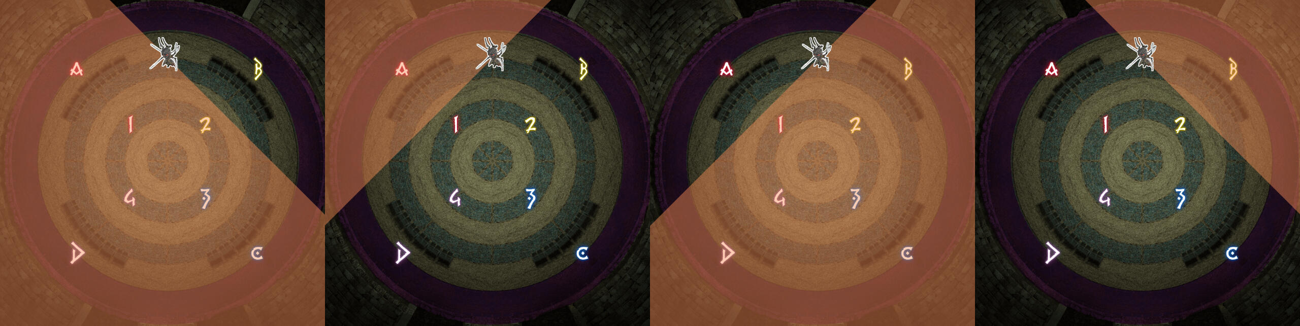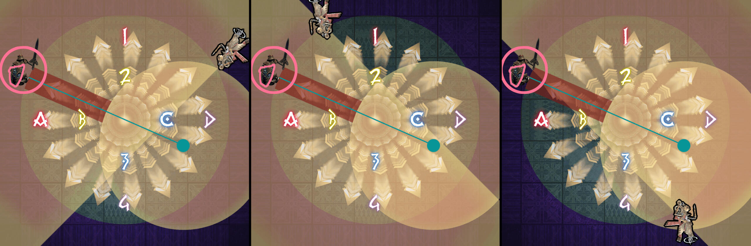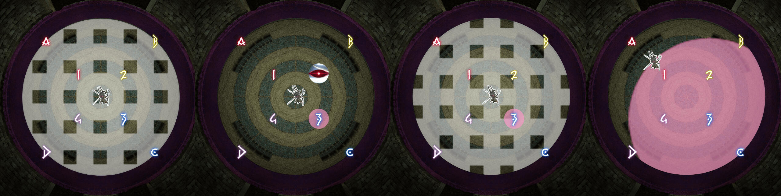- 2 by 2 Guards will step a number indicated above their heads, & use a rectangle AoE