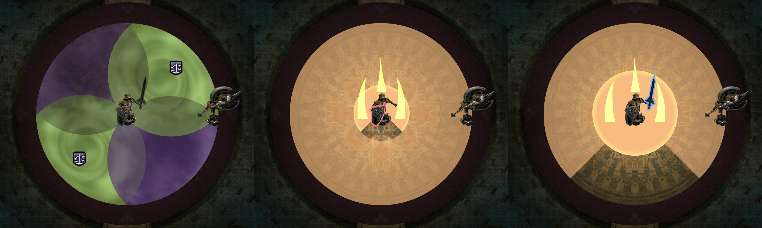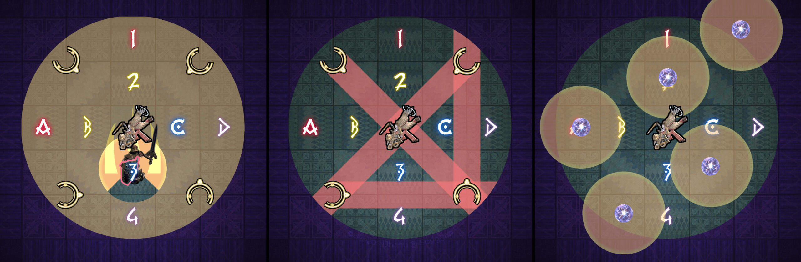 - Knight position bait → Shield / Sword claws' AoE → Turrets' lines AoE → Lightning orbs