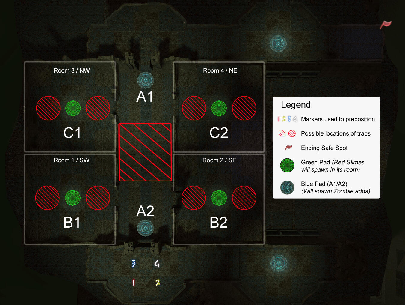 - Purple = unsafe wall of death // Orange = traps possible spawns
