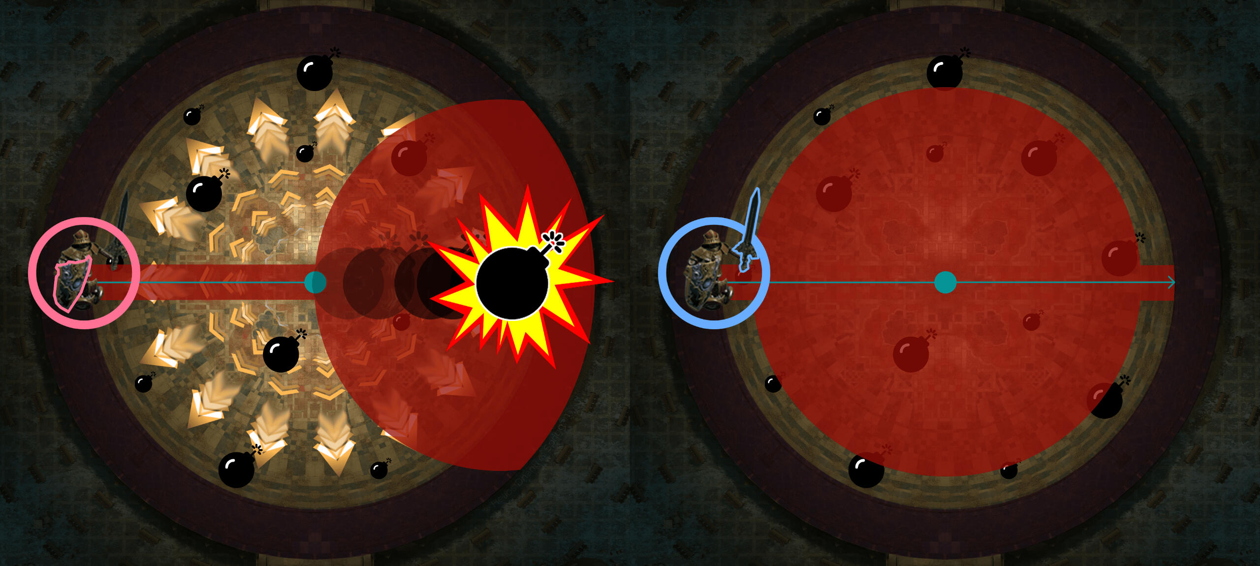 - Knock back from blue line (2 squares) → (Debuff →) Freeze / Pyretic → Bombs
