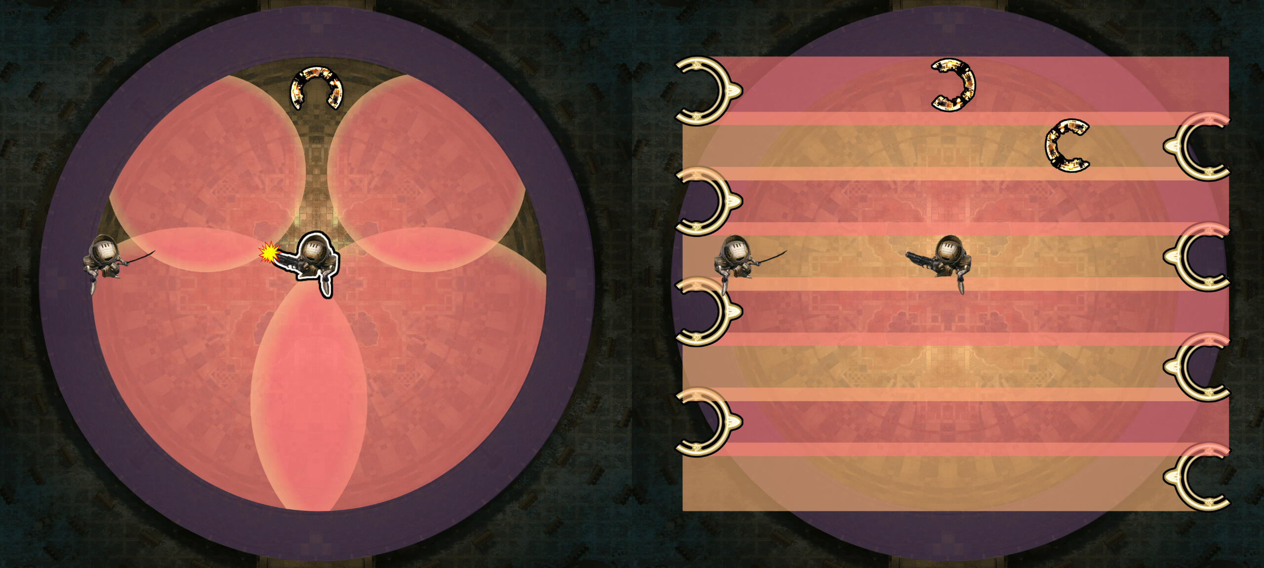 - Parallel lines → (Debuff →) Wind / Gravity puddles → Open spot to Gunner → to turret