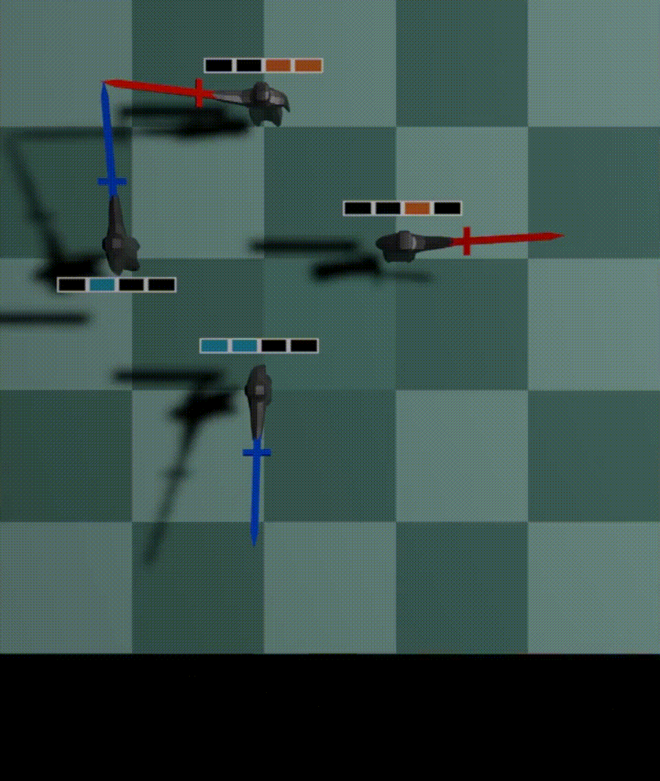 - Kited clockwise by 4 tanks, starting at each cardinal / marker